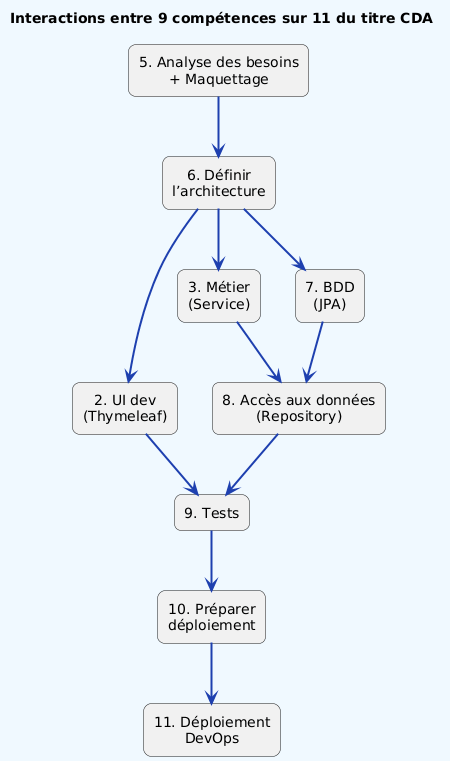 Un projet avec Spring Boot (sans la partie Front-end) permet de valider 8 compétences sur les 11 du titre CDA :