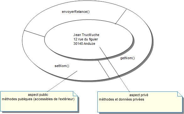 class Individu { private String nom ; private String prenom ; public void print() print() { ... // formate et imprime nom et prénom } ... }