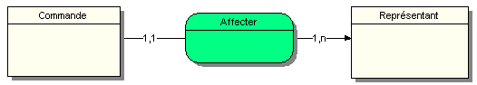 Dans cet exemple, une commande est affectée à un et un seul Représentant, tandis qu’un représentant doit être affecté à une ou plusieurs Commandes.