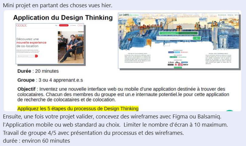 Ici, vous avez 1/2 journée pour travailler sur l’un des 5 projets proposés hier.